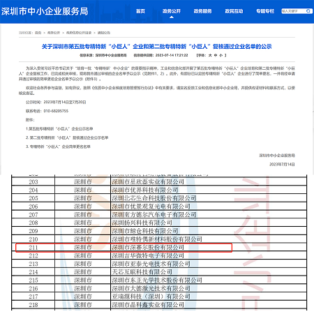 2023年7月21日, 喜報(bào)傳來,在工業(yè)和信息化部組織開展的第五批專精特新“小巨人”企業(yè)培育活動中,深圳市深賽爾股份有限公司順利通過審核及公示。